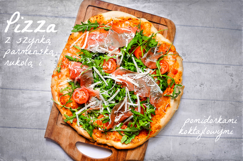 podpiekły. Po wyjęciu z piekarnika posypujemy rukolą, pomidorkami koktajlowymi,